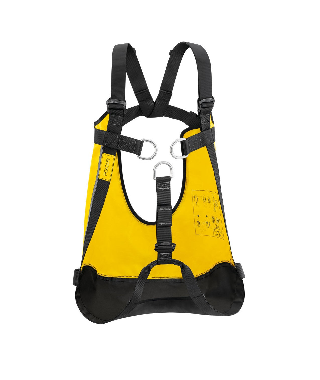 The PITAGOR evacuation triangle is designed for rescue operations and cable lift evacuations. The ergonomic shape of the seat and the presence of shoulder straps makes suspension more comfortable than with a classic evacuation triangle. Color-coding differentiates the back and seat, as well as the closure system, making it easier to put on the evacuee. The high-strength TPU tarp material allows regular to intensive use.